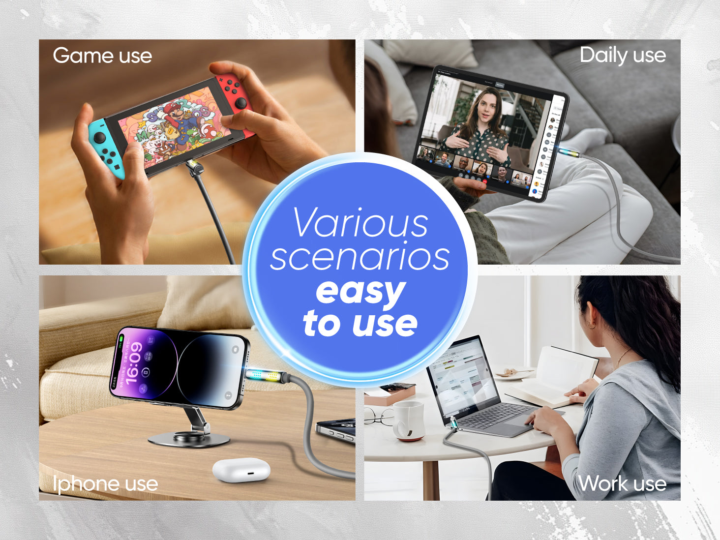 iPhone/Samsung/Huawei/Oppo/Xiaomi/vivo/iPad/Galaxy Tab/MatePad/MacBook/iPad/Wireless Chargers/Wireless Earbuds/Smartwatch/Power Bank/Switch and other electronic devices.