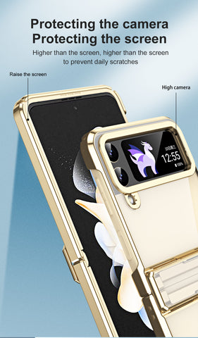 【Model】Specially designed for Samsung Galaxy Z Flip 3/Z Flip 4 5G Electroplating Transparent Hinge Full Inclusive Phone Case.
