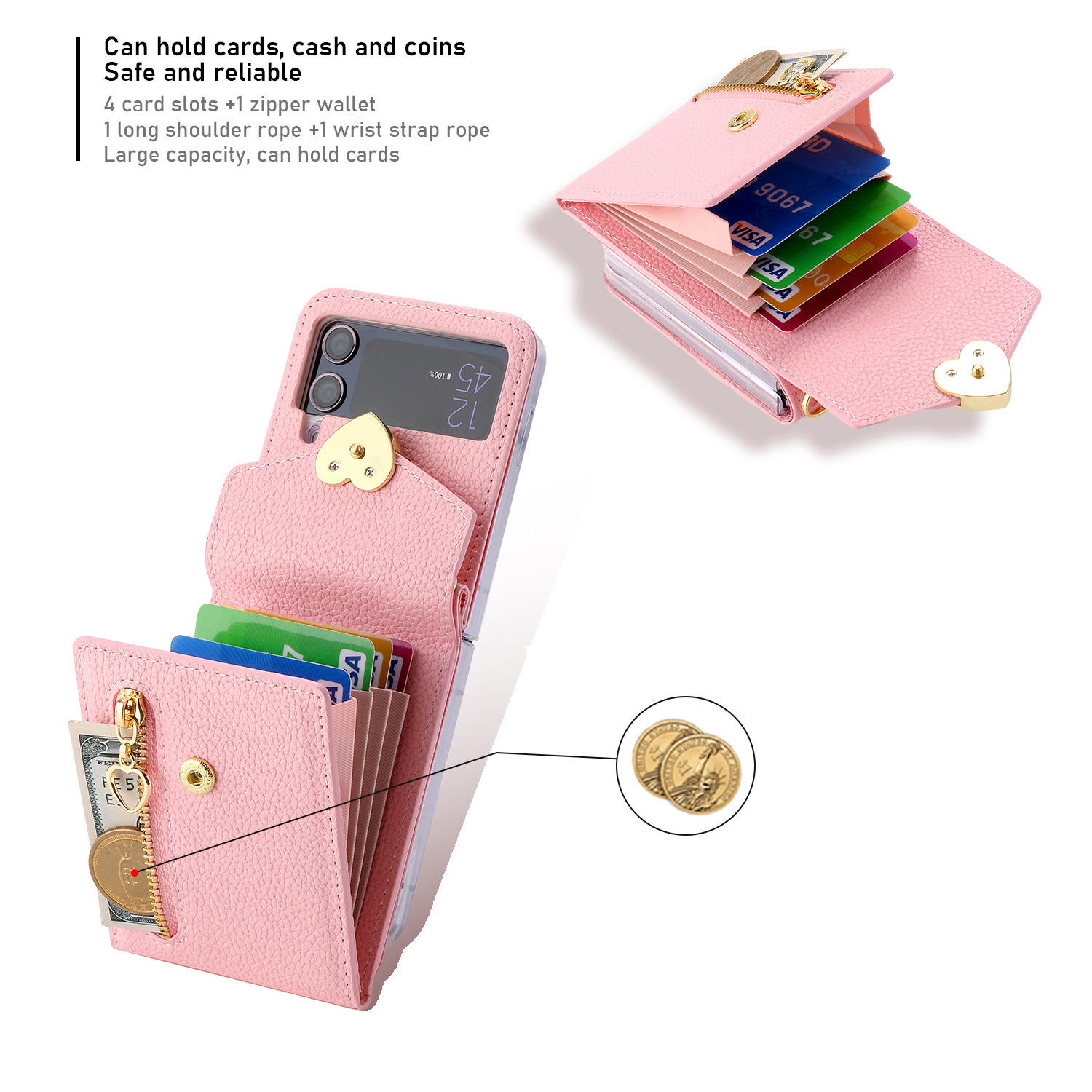 【Wallet & Card Holder】This For Galaxy ZFlip 3/ZFlip 4 wallet for women offers 4 card slots for credit cards, ID cards, business cards, and a zipper pocket for cash, bills, keys, coins. Button closure keeps your cards safe and well protected. Can be used as a phone case, card holder, wallet, very unique and convenient.