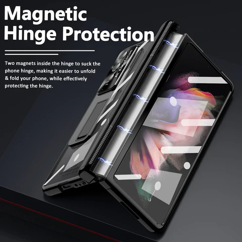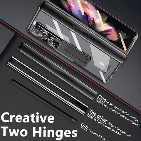 - 【Creative Two Magnetic Hinges Protection】Two types of magnetic hinge housings are available, the hinge with pen slot and the hinge without pen slot. The pen slot is located at the magnetic hinge of the zfold 3/4 case, making the S Pen more convenient to use and carry. Of course, if you don't need to use a pen holder, you can also replace it with a non-slip magnetic hinge without a pen holder, giving you more options.
