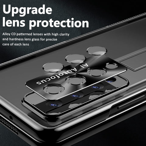 - 【Upgraded lens film and front screen protective film】The newly upgraded lens protective film adopts aluminum alloy CD pattern lens sheet and high-transparency hard lens glass sheet to precisely care for each lens you fold. The front screen protection is made of 9H tempered Made of glass, 99.99% clarity and high sensitivity, maintain the original touch experience and visual experience, the hidden bracket is suitable for multiple scenarios, free your hands in leisure time, whether it is folded or unfolded, it can be easily used, making you better and better. Use z fold 3/4 safely.