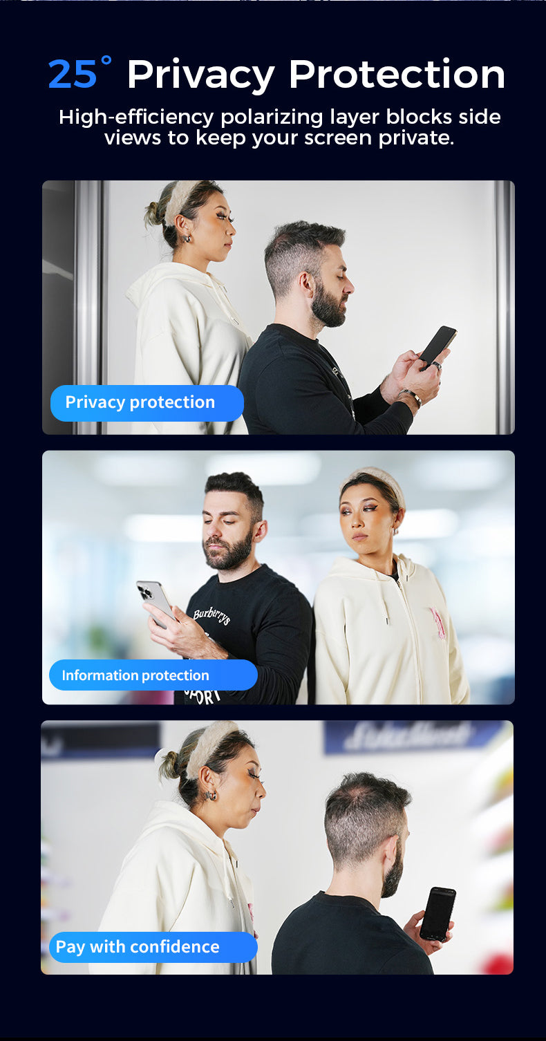 Limits screen visibility to 28°, blocking side-view peeping. Keep messages, banking apps, and photos secure.