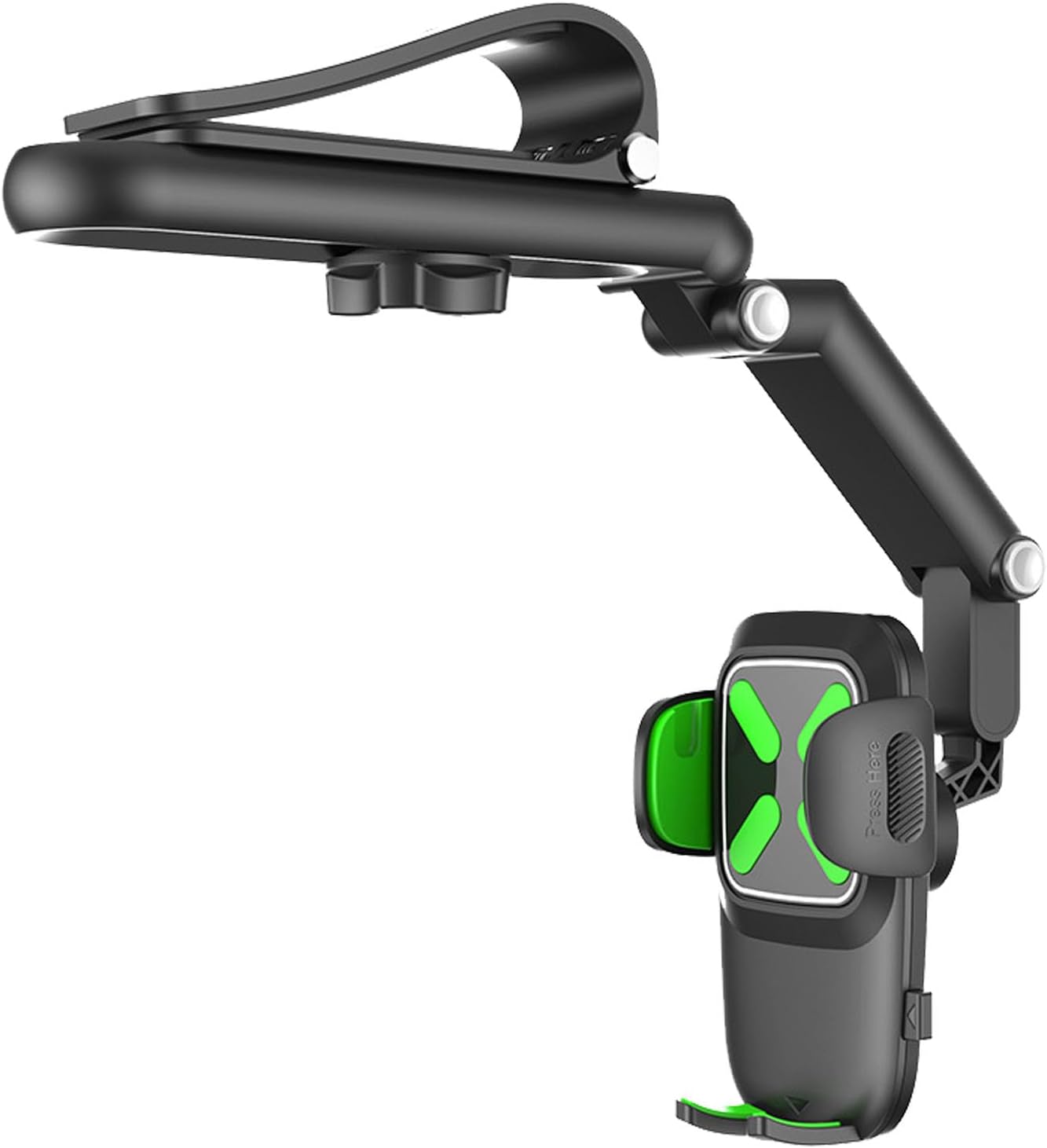 - 1080° Rotation car cell phone holder: Sun Visor Phone Holder designed with 360 degrees roatatable ball jiont for optimalxiewing angle and 720 degrees adjustable telescopic arm. This carcell phone holder canbe adjusted freely according to the front passenger seat, in oder to make sure driving safety, stability and aviod obsttructing the sight