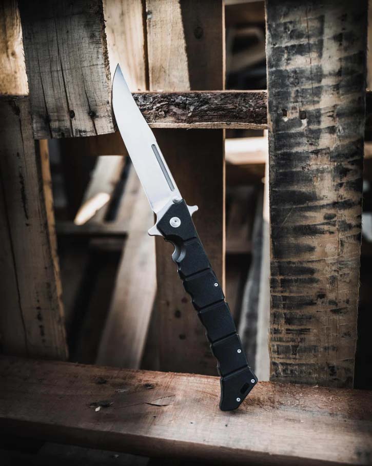 Inspired by many butterfly knives, this butterfly knife can be used as a flap knife, making it a politically correct choice for those who cannot legally own a butterfly knife. The blade is made of 8Cr13MoV stainless steel, which is professionally hardened to 57-58 Rockwell hardness, giving it a sharp, strong tip and just enough belly for both cutting and chopping. The handle is concave, providing countless comfortable grip options. The handle is made of glass-filled nylon (GFN), which is weather-resistant and unlike any handle we have made before.
