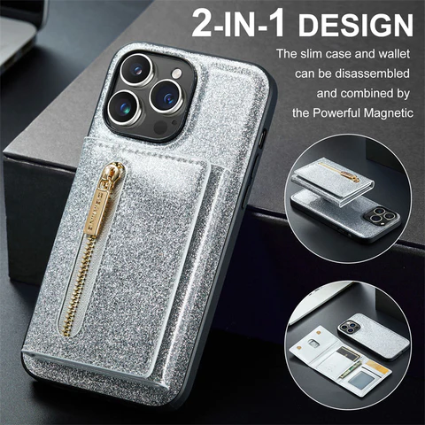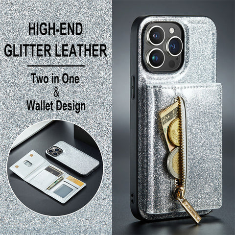 - 【Compatible】 Glitter Powder zippered wallet case designed for iPhone 14 series.