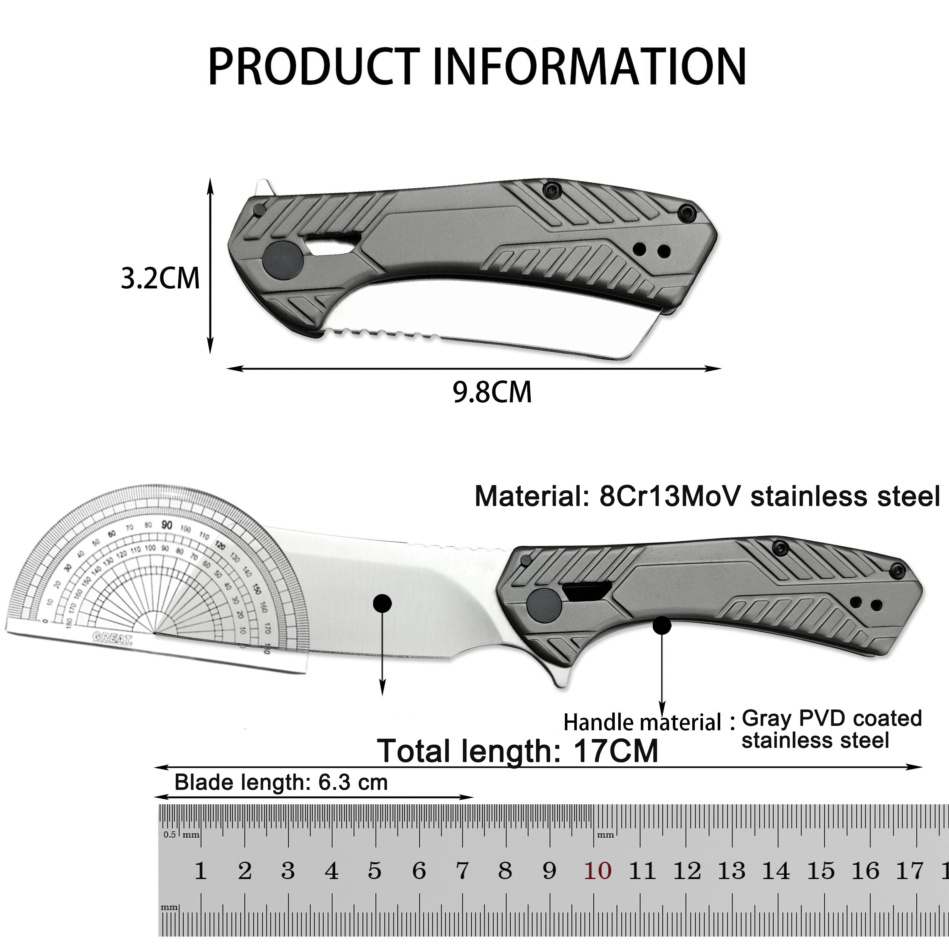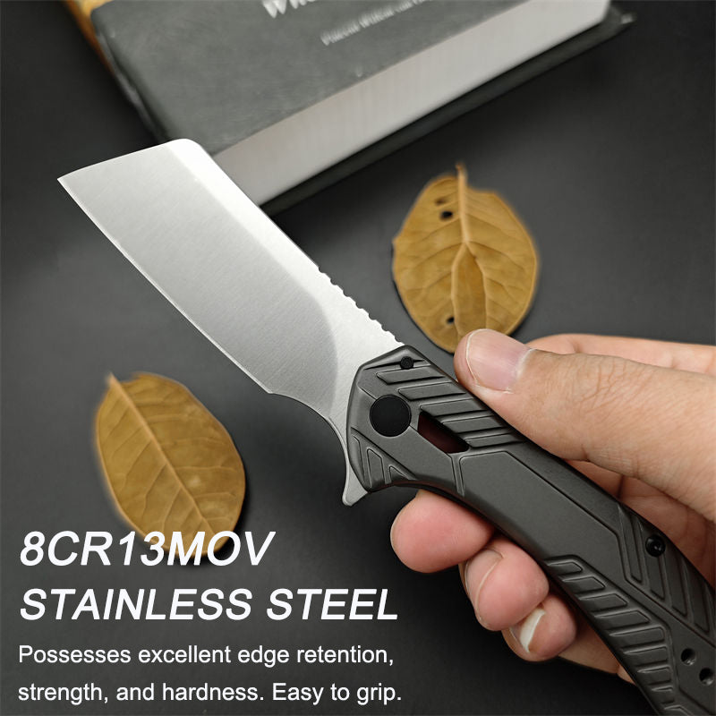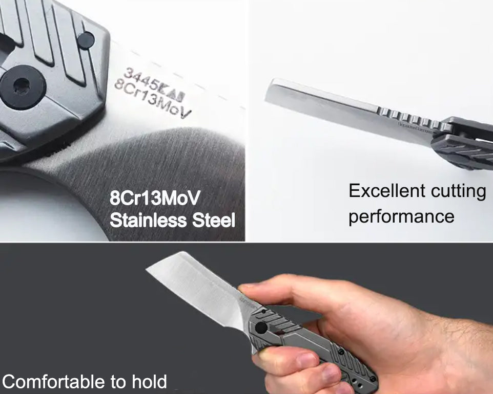 Folding Knife: This folding knife features a cleaver-style blade design, offering excellent cutting performance and effortless slicing and chopping. Sharp and fast; Even at only 3 inches long, the blade remains robust and durable, making this compact and reliable folding knife.It is an essential item for wilderness survival, exploration, and family use.