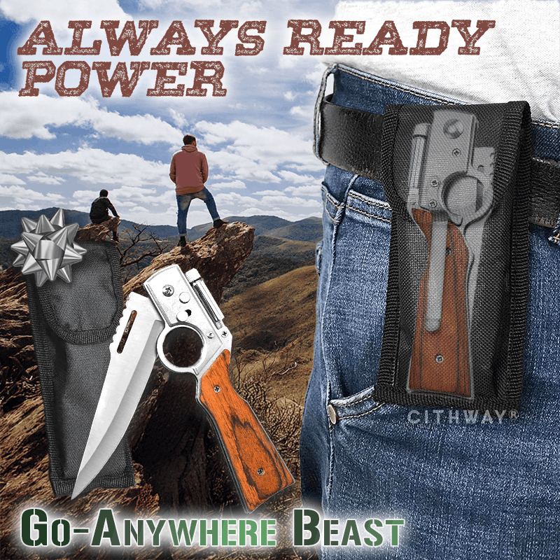 Feel iron grip control and zero-fatigue command with a premium wood handle engineered for real human mechanics—secure, non-slip, and perfectly contoured for all-day dominance, even in wet conditions. The smooth flip-open action and rock-solid lock-up put total power in your hands the moment you need it. Tough-as-nails black pouch with belt attachment. Keeps your blade safe, silent, and right where you need it—on your hip, in the wild, or on the job. This go-anywhere beast comes in compact sizes with a tough nylon sheath and pocket clip, making it the ultimate everyday carry upgrade. Lightweight yet substantial, it’s built for hiking, fishing, hunting, or discreet self-defense—ready to tackle any challenge without weighing you down. For the thrill-seeker or adventurer who demands reliability, style, and raw capability, this knife doesn’t just perform—it owns every situation with effortless authority.