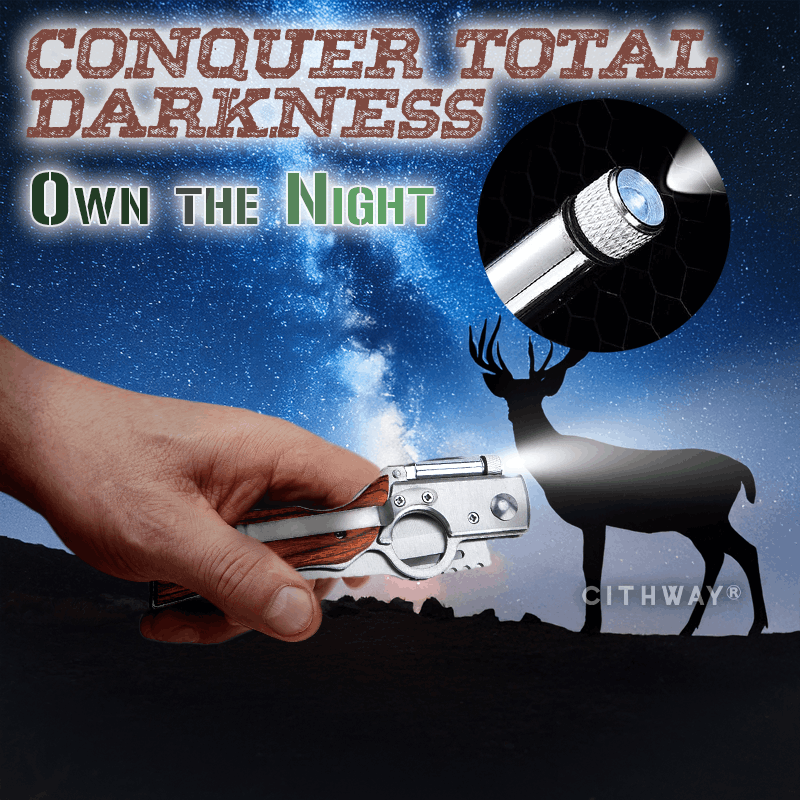 Unleash pure alpha attitude with a knife that demands attention the second you pull it out. Its head-turning rugged style, aggressive trigger-guard ring, and classic wooden stock grip make it an instant conversation starter on any trail or campsite. This isn’t just a blade—it’s a bold declaration of confidence and timeless toughness that turns an everyday tool into a symbol of unbreakable readiness. Conquer total darkness like a boss with the built-in LED light that floods trails, tents, or emergencies with bright, instant illumination. Own the night without hesitation, because real men don’t wait for daylight—they dominate it. Crafted from high-grade stainless steel, the unbreakable razor edge delivers relentless sharp power, slicing through rope, wood, or game with zero compromise, season after season.